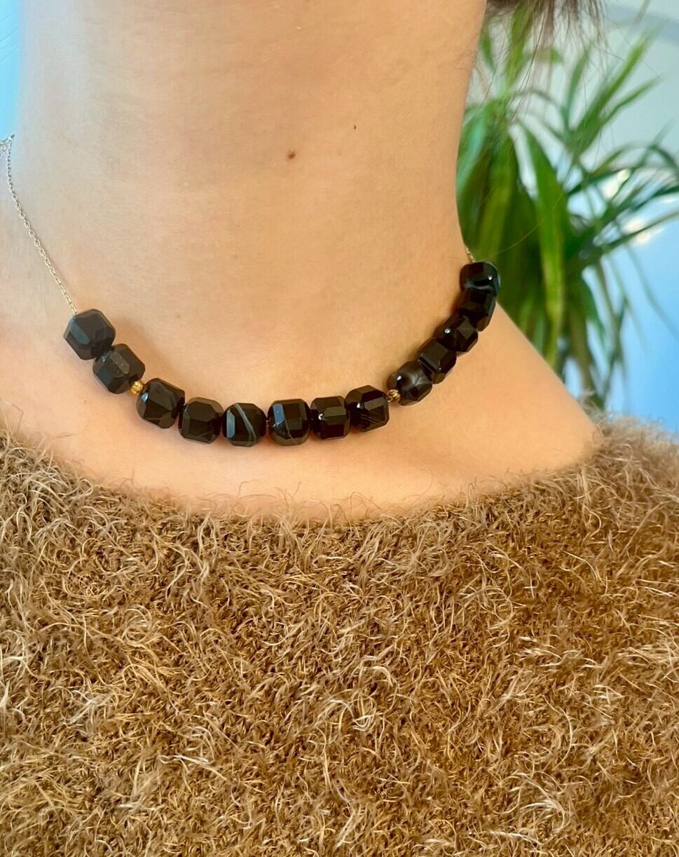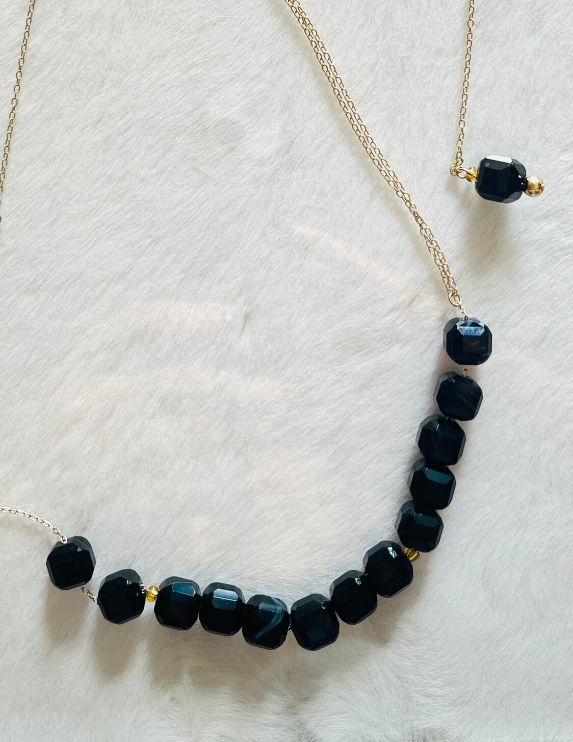 ☆漆黒のオニキスに白いラインが入る天然石・ストライプオニキス(サードオニキス)のキューブカットです。