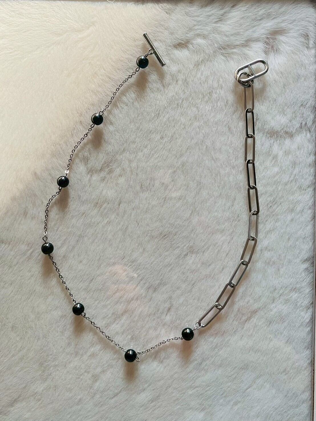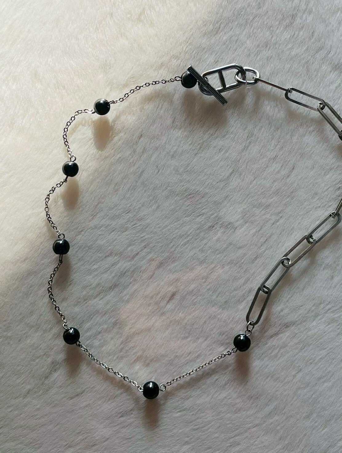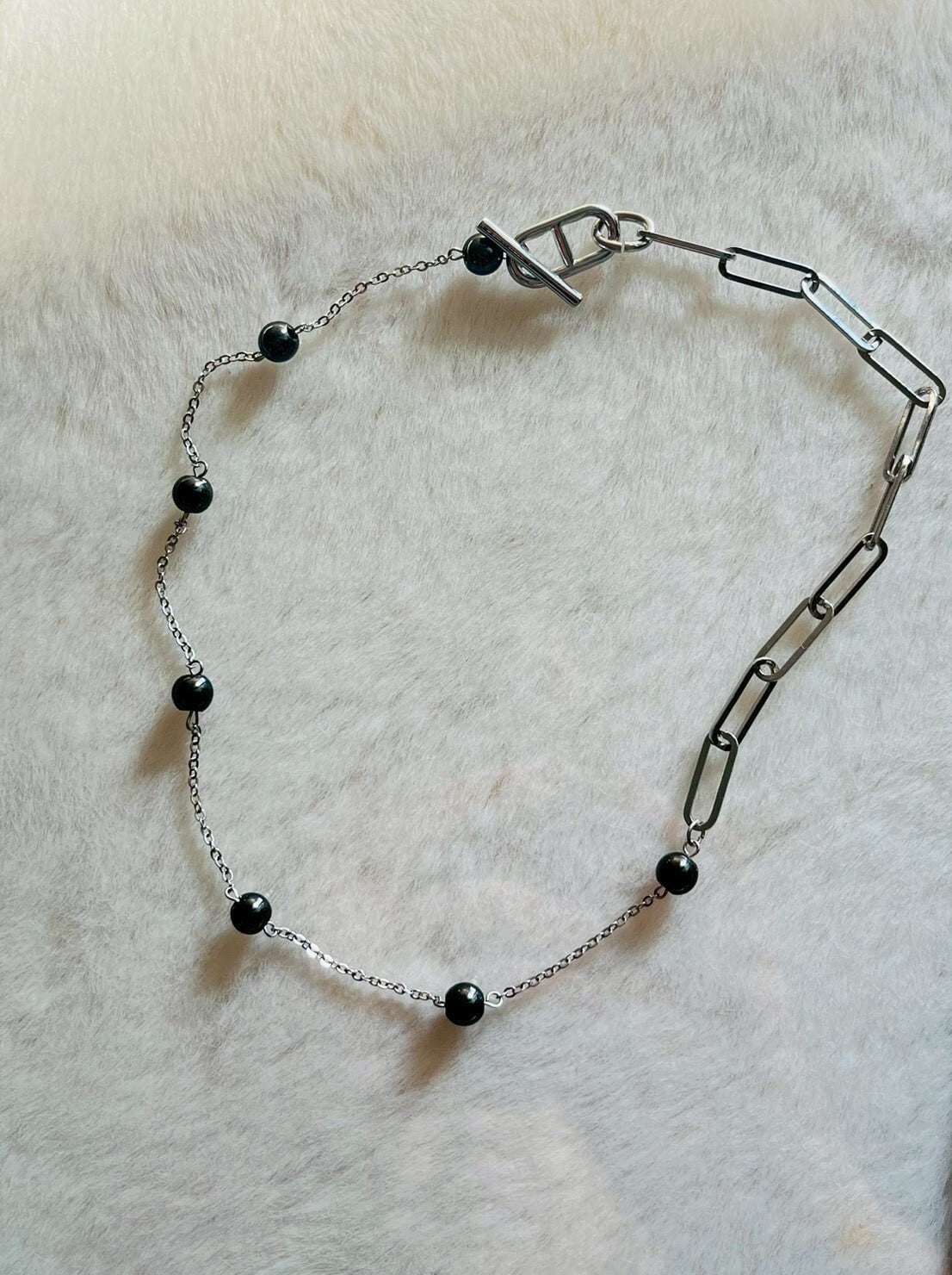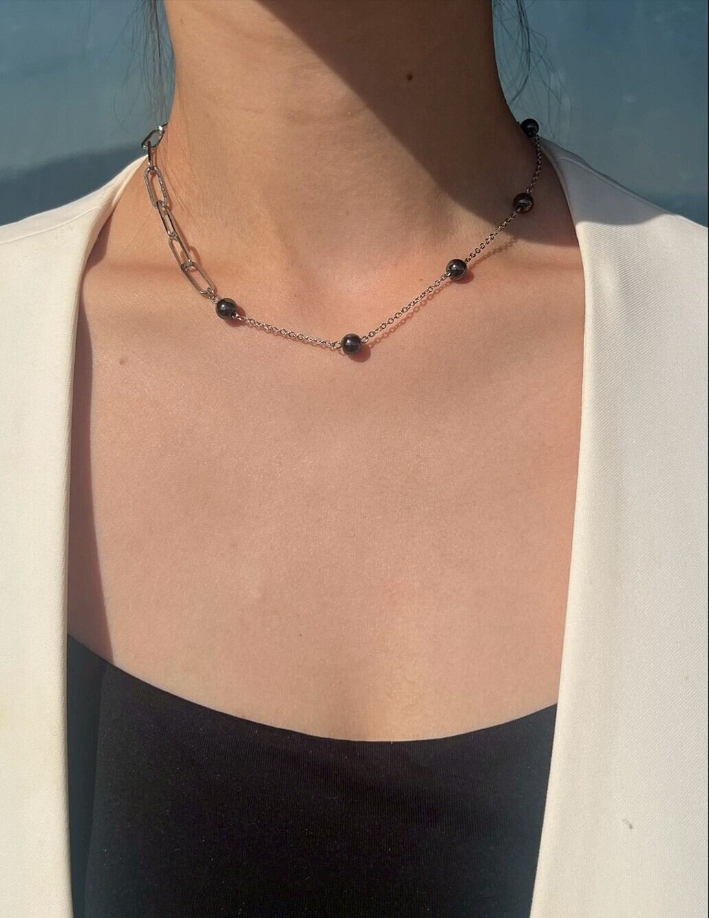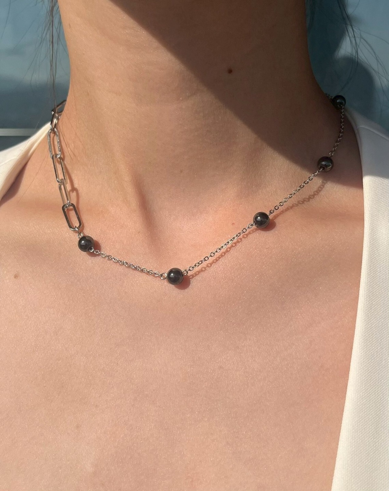 シルバーの艶めきとヘマタイトの深い輝きが織りなす、