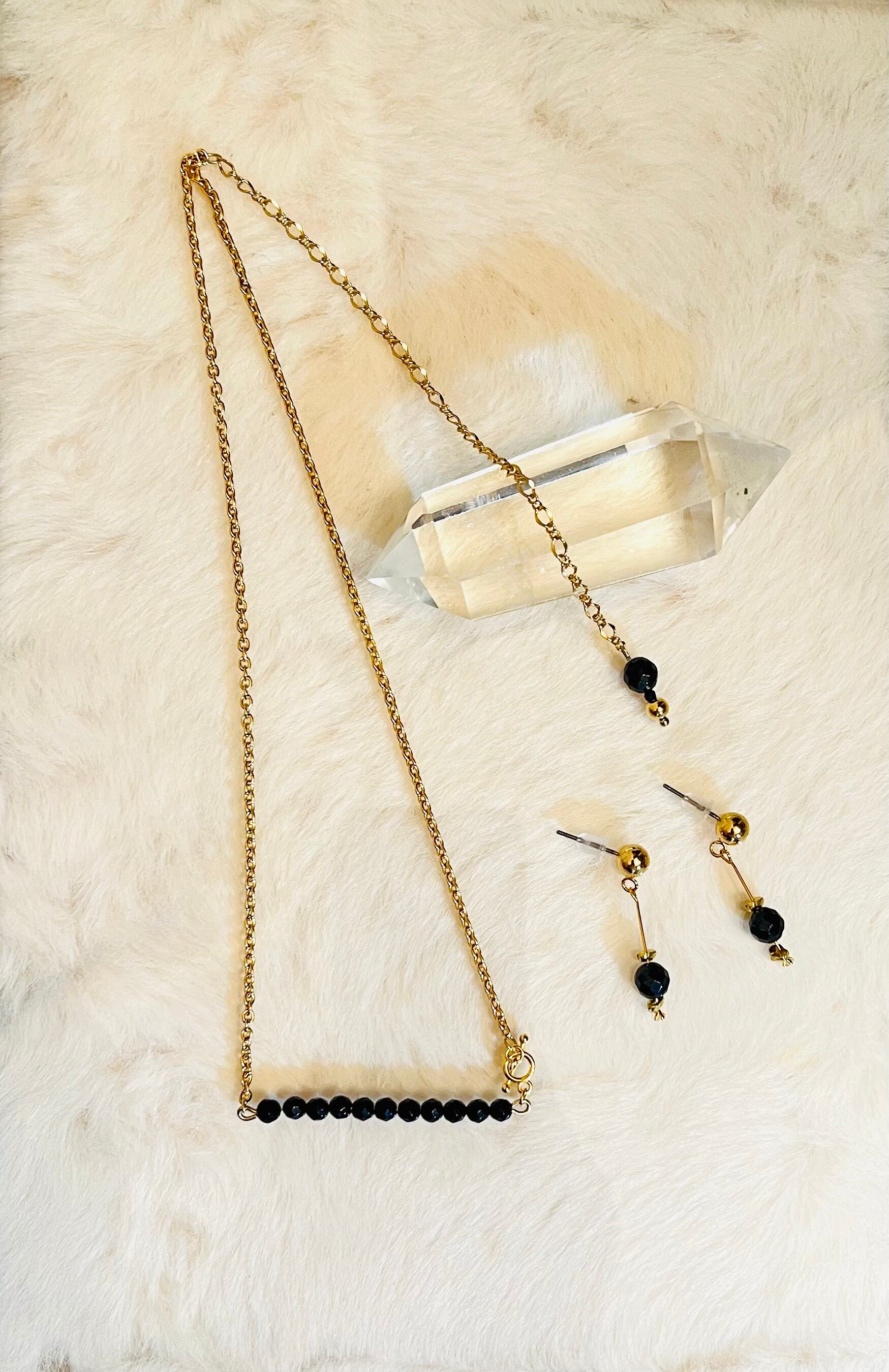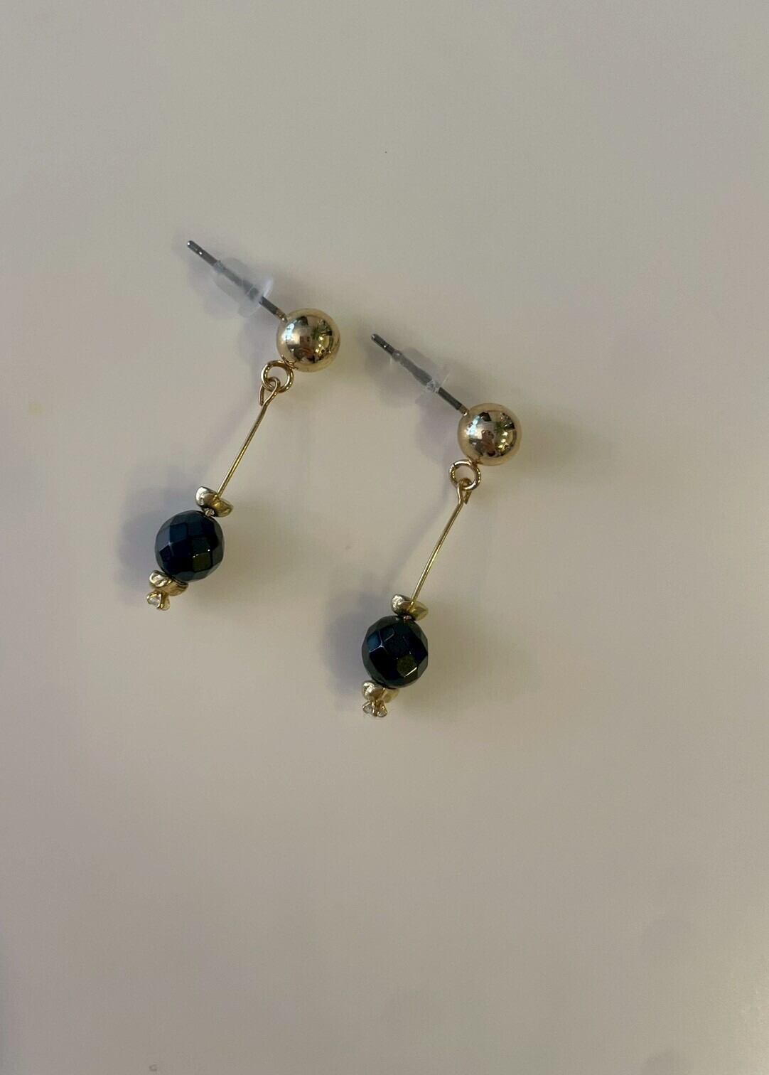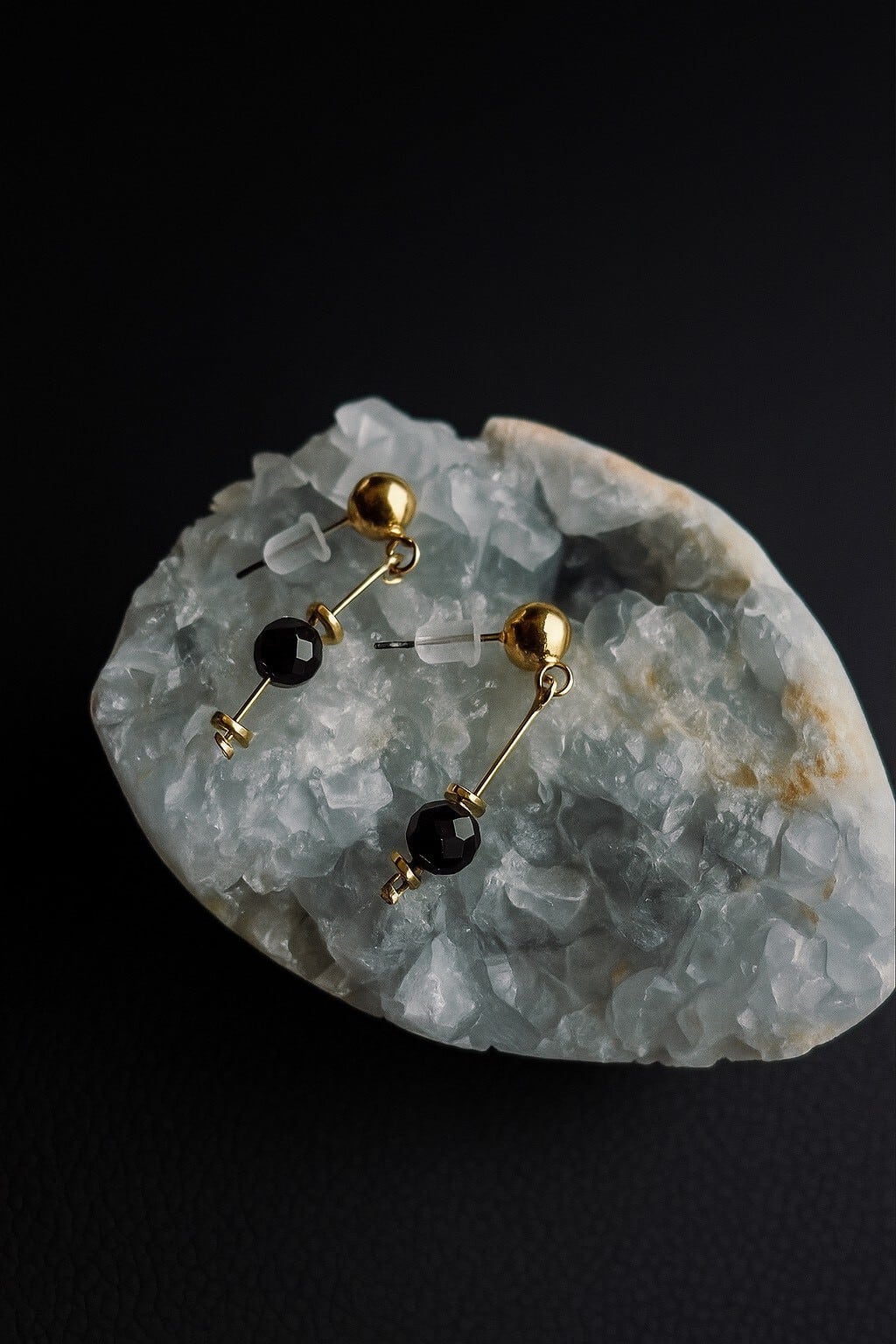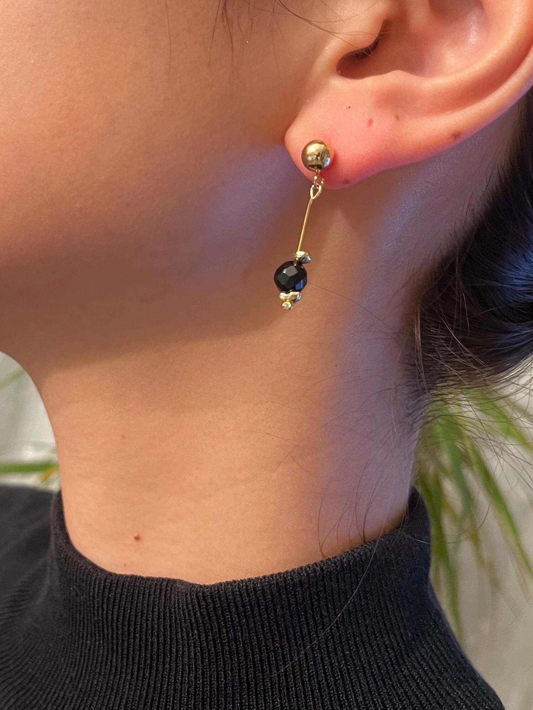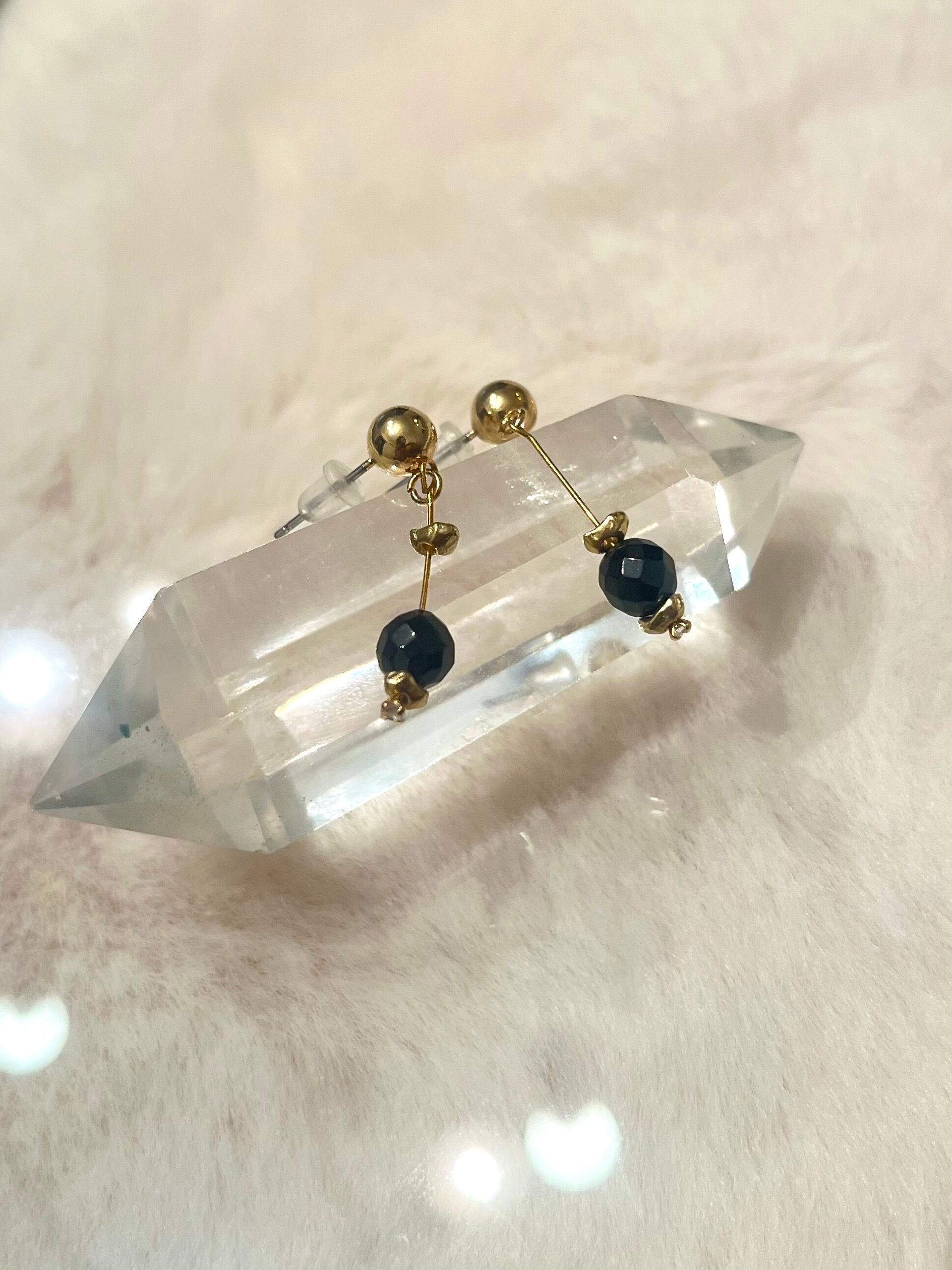 漆黒の輝きを放つブラックスピネルを、上品なゴールドパーツで仕立てたエレガントなピアス✨