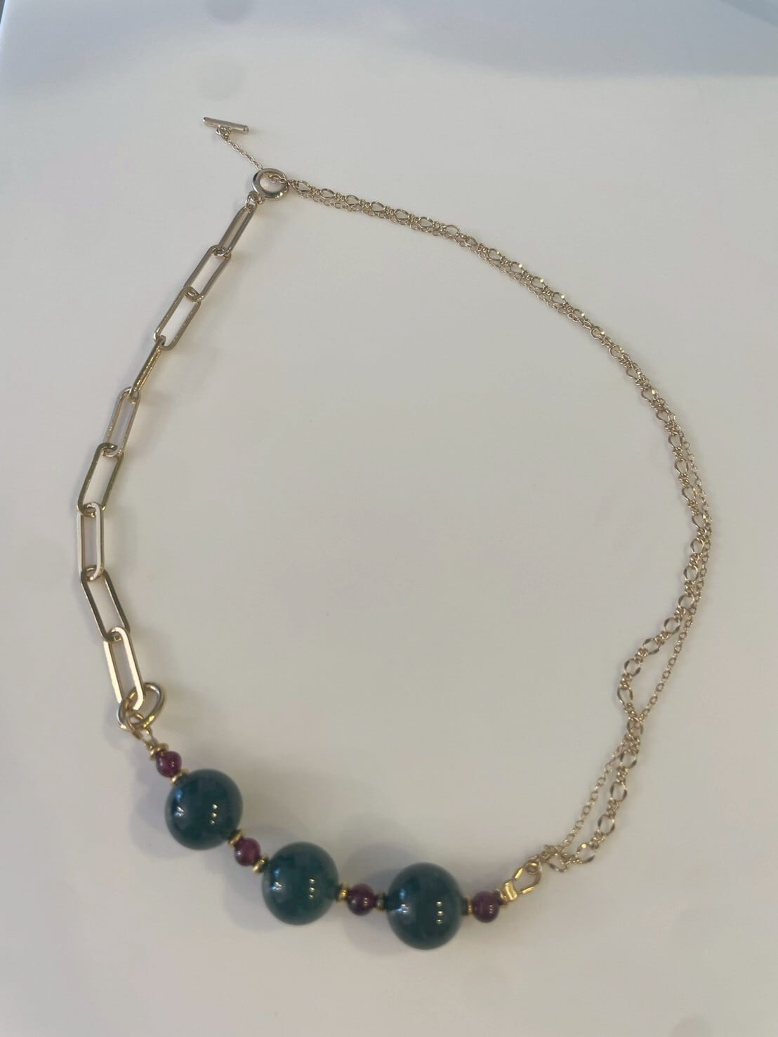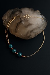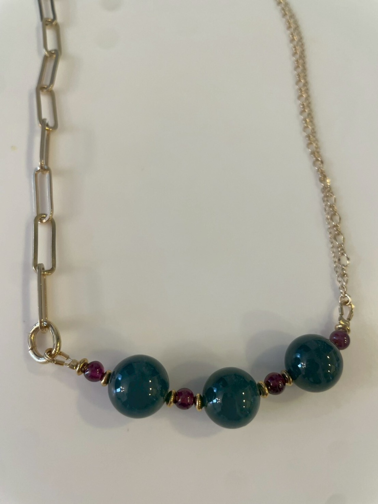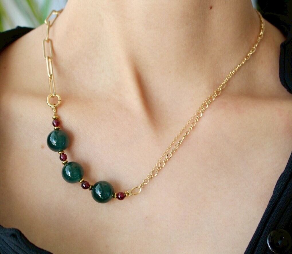 青翡翠の静けさと、ガーネットの熱をバランスよく組み合わせることで、