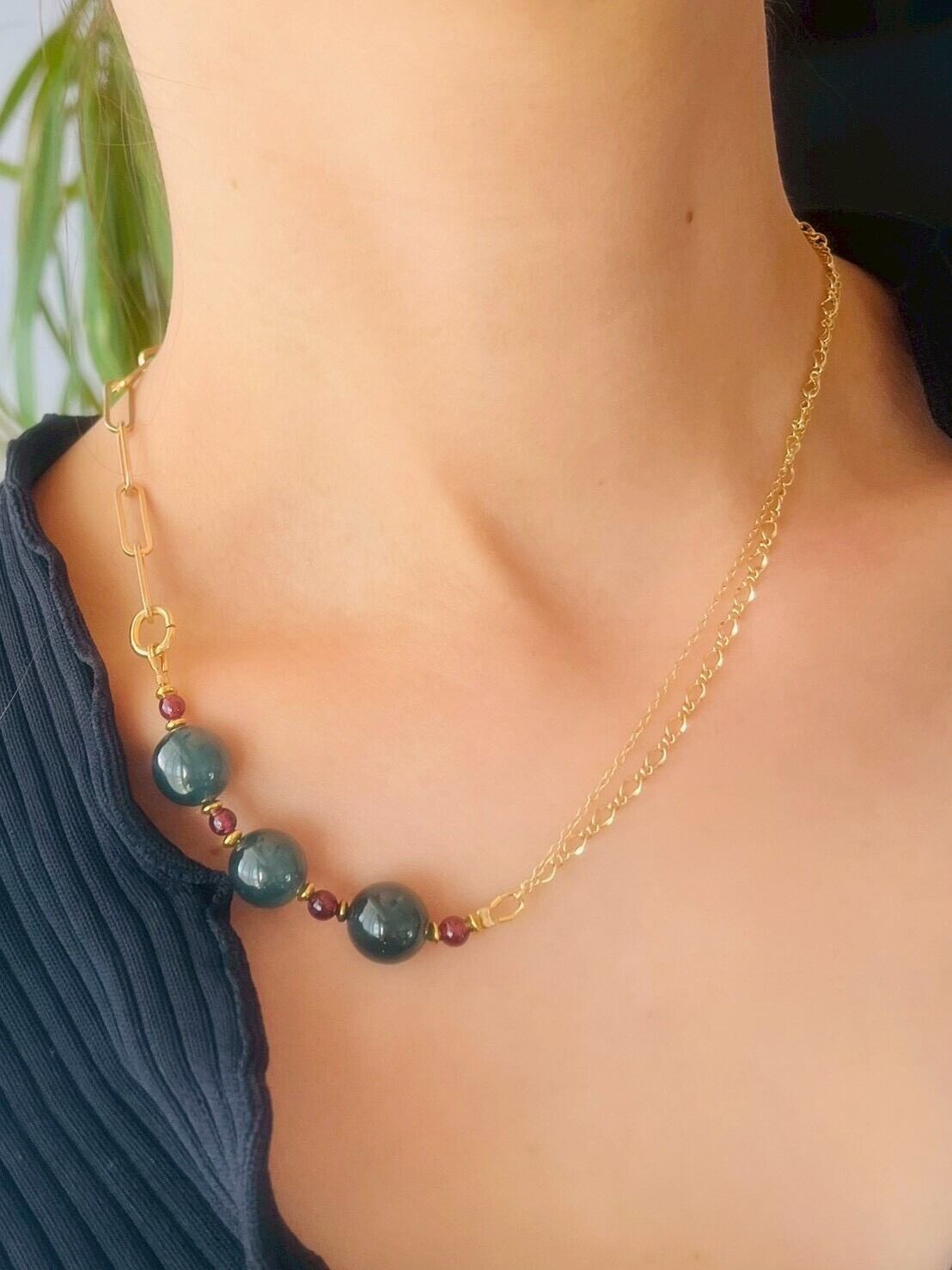 情熱的な赤が魅力の ガーネット を合わせた、存在感のある上質ネックレスです✨