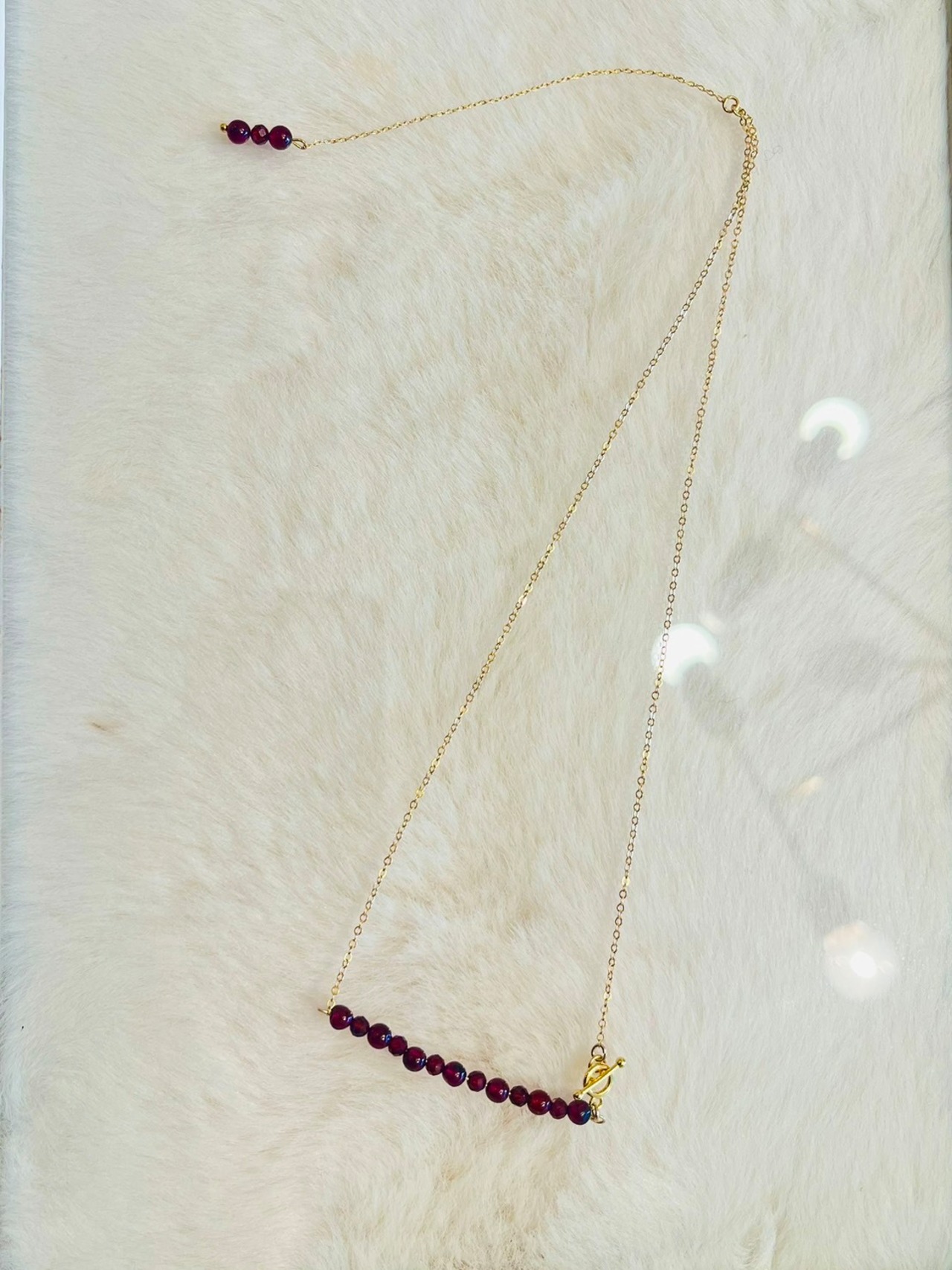華奢なゴールドチェーンがガーネットの美しい赤を引き立て、上品な仕上がりにしています✨