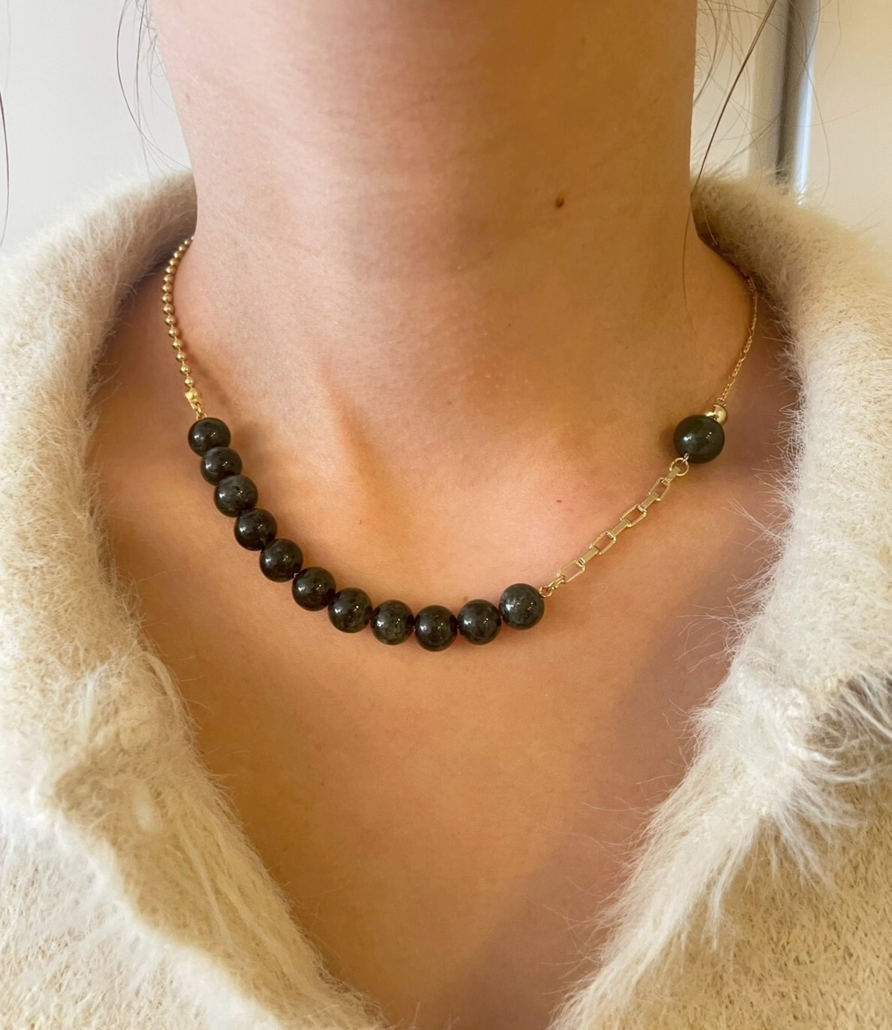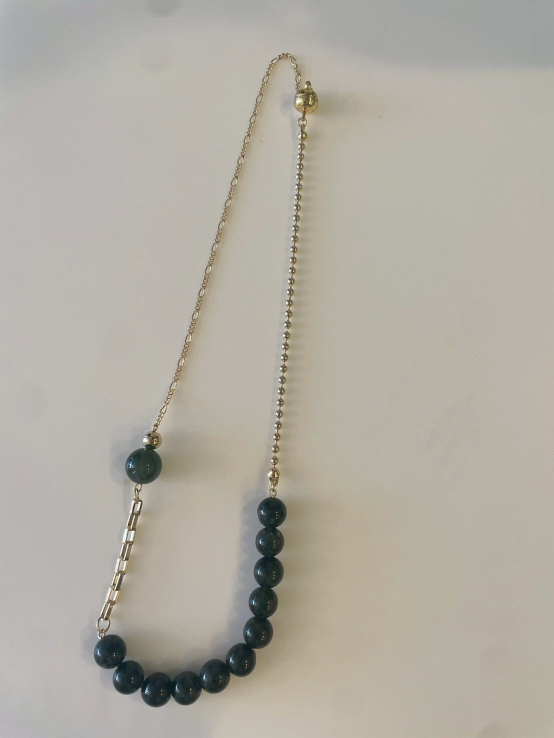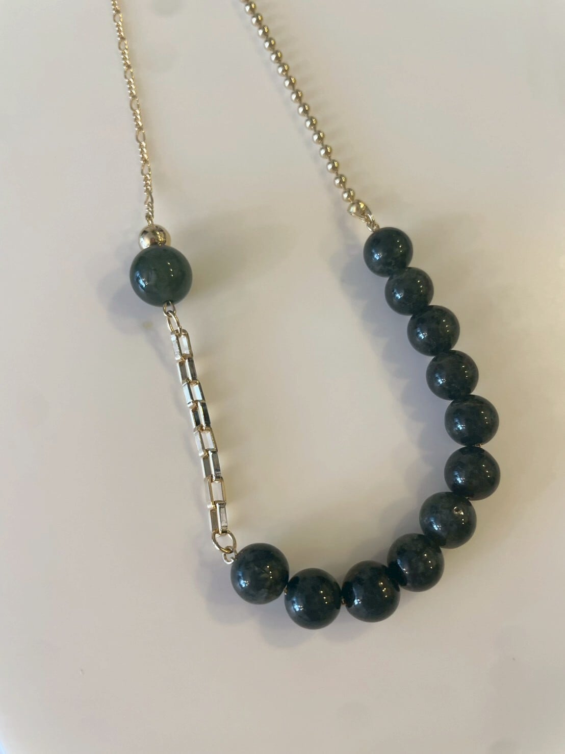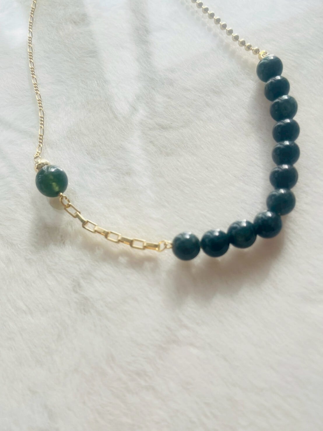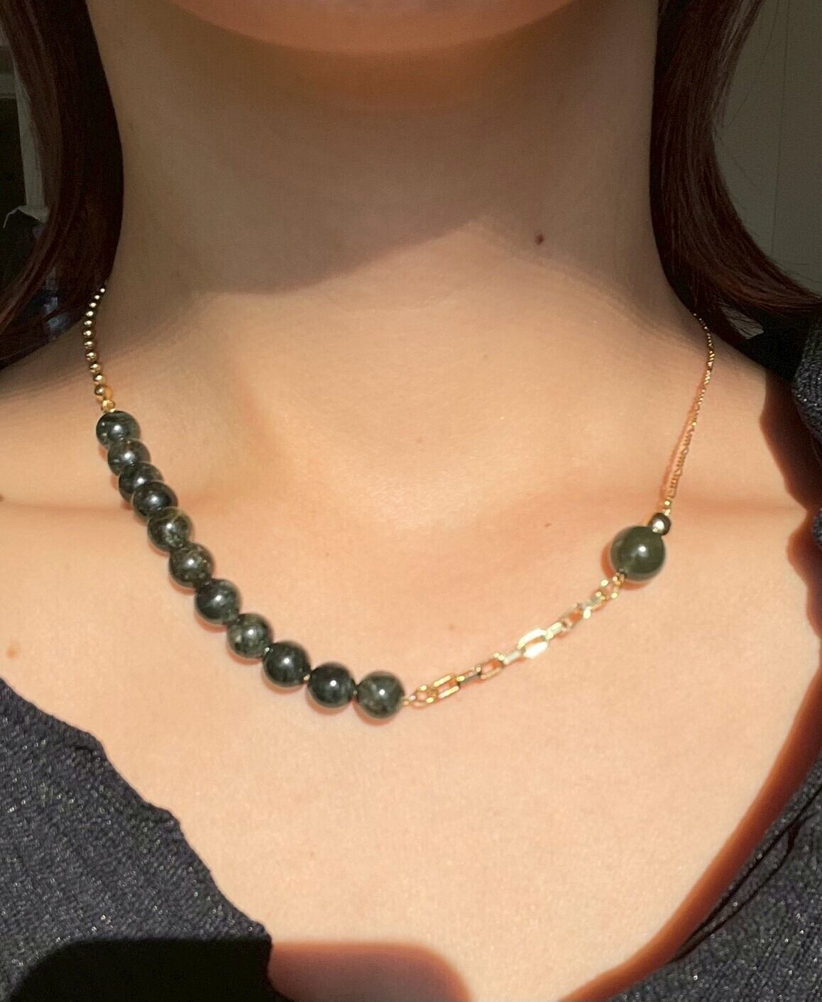アシンメトリーネックレス・グリーンルチルクォーツ/グリーンマイカ