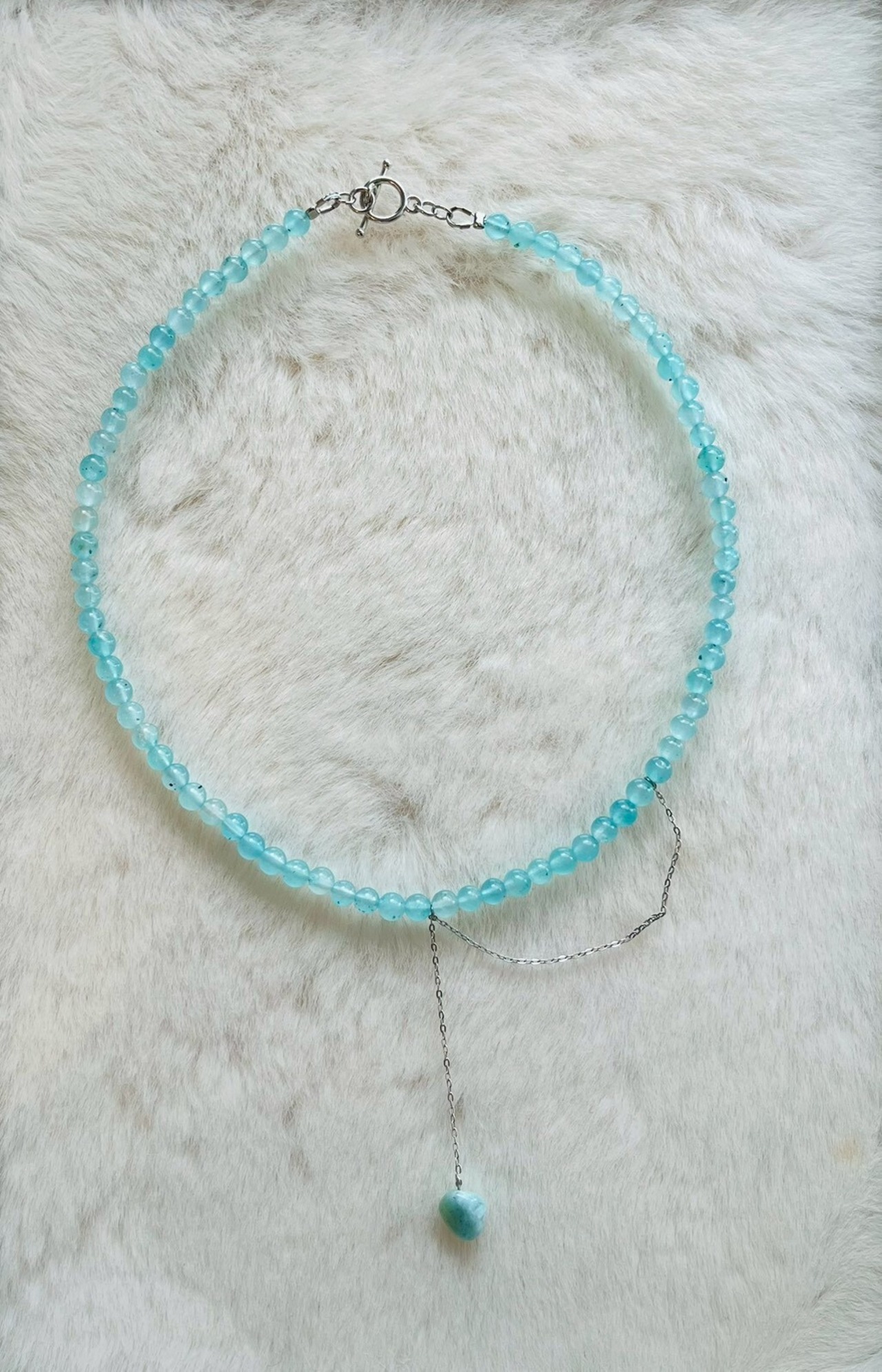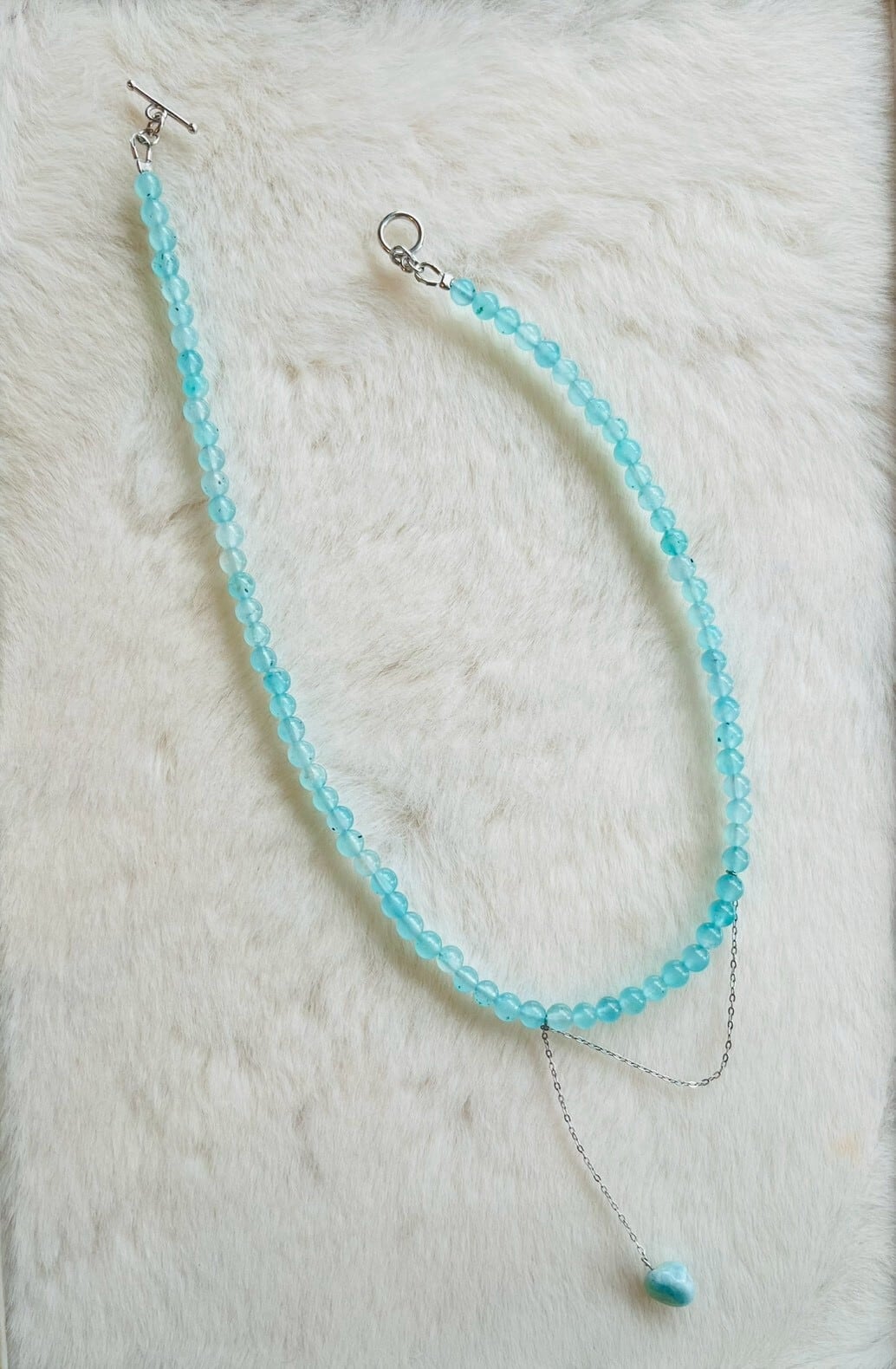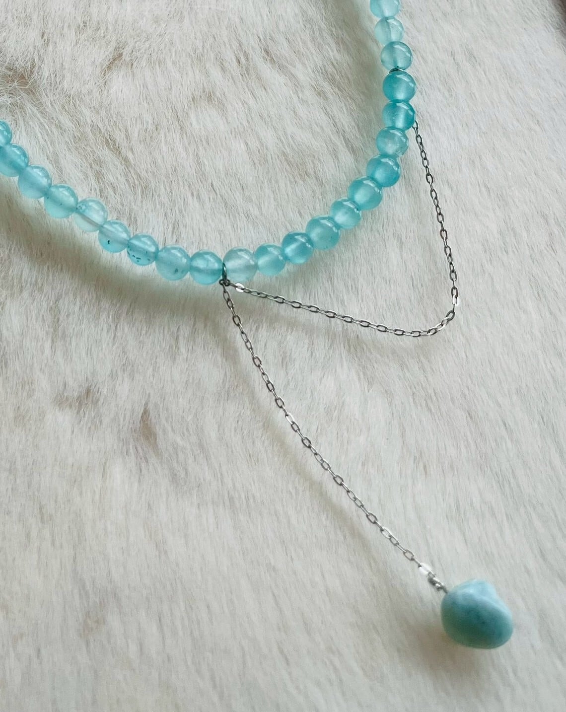 シーブルーカルセドニーとラリマーを組み合わせた、清らかな雰囲気のネックレス。