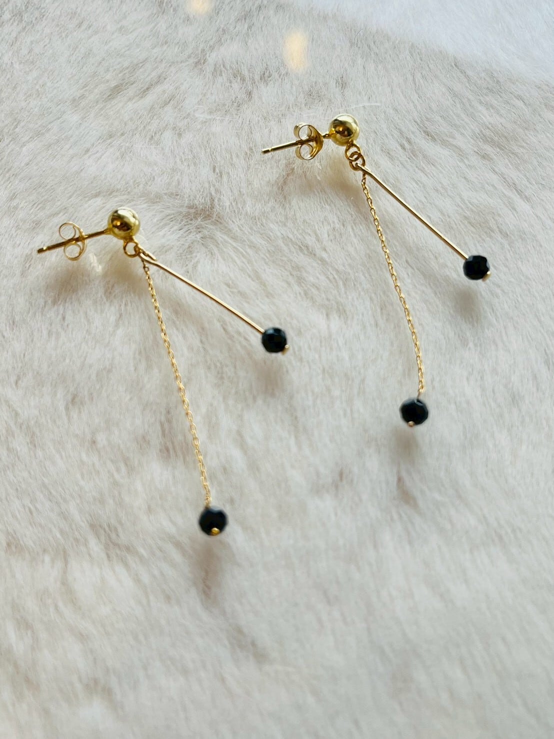 繊細に揺れるチェーンの先にあしらわれたブラックスピネルが、