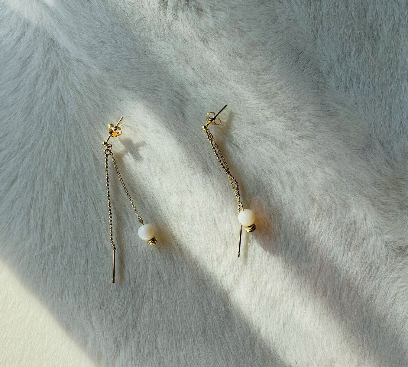 繊細なゴールドチェーンと縦ラインのバーを組み合わせたピアス✨