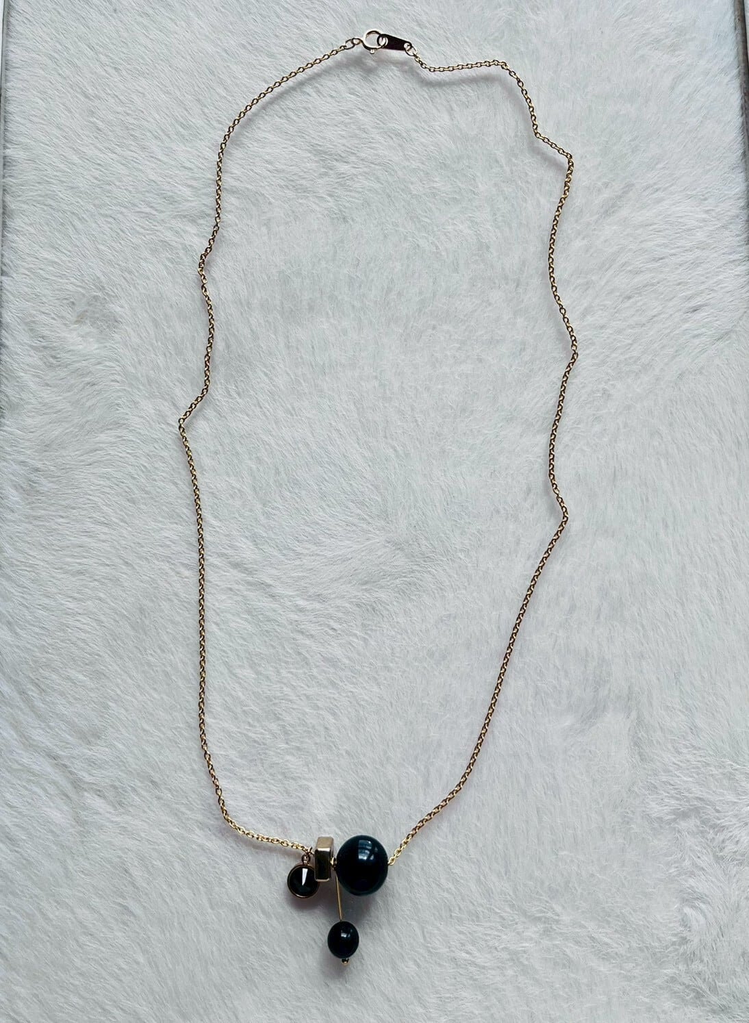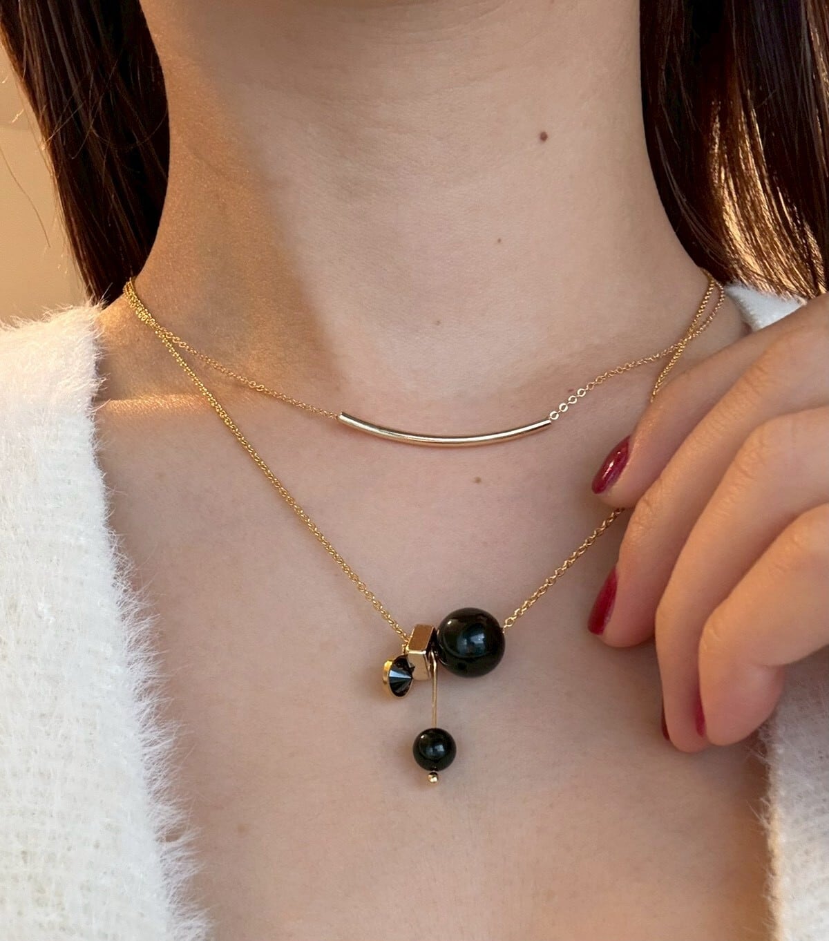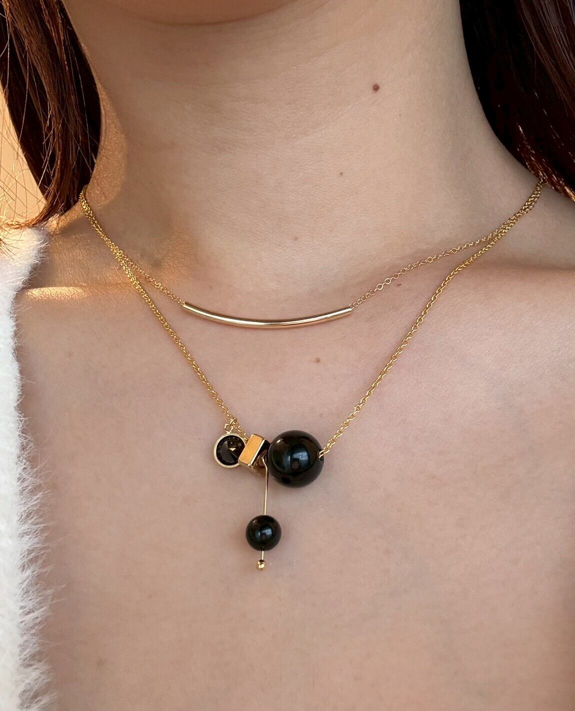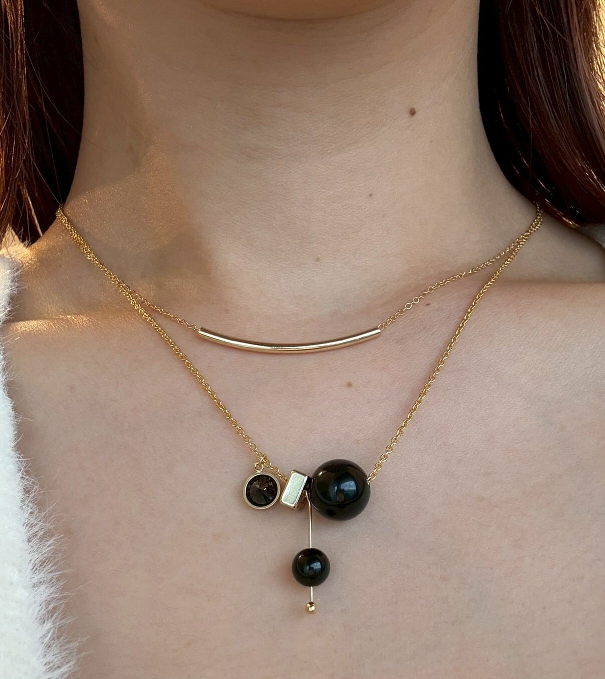 深い黒が印象的なオニキスは、装い全体を引き締め、スタイリングに芯のある美しさをプラス。