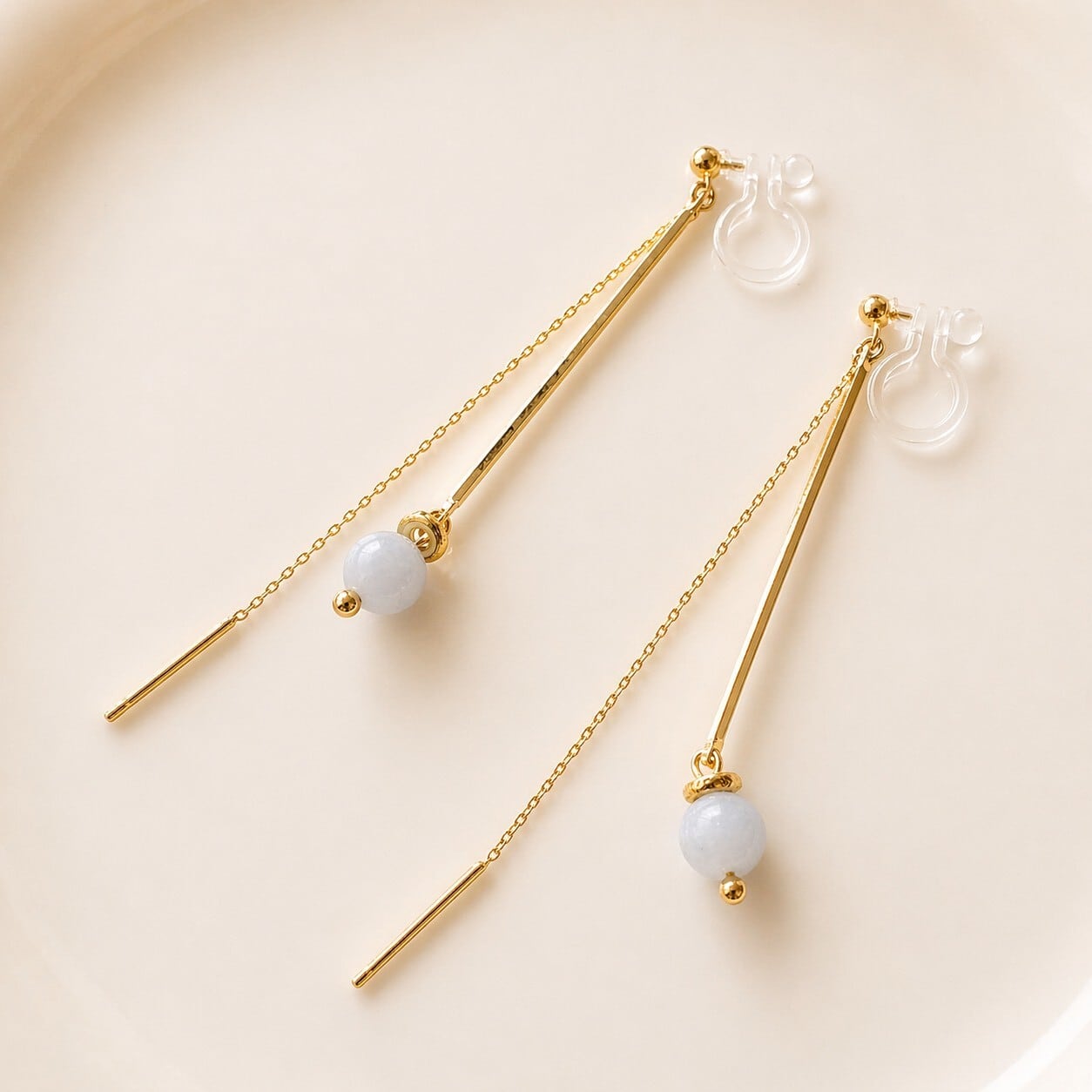 繊細なチェーンとスティックパーツが動くたびに優しく揺れ、